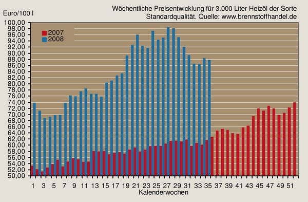 Der Heizölpreis lag in der 35. KW 2008
