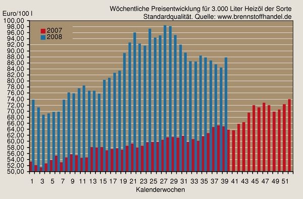 Der Heizölpreis lag in der 39. KW 2008