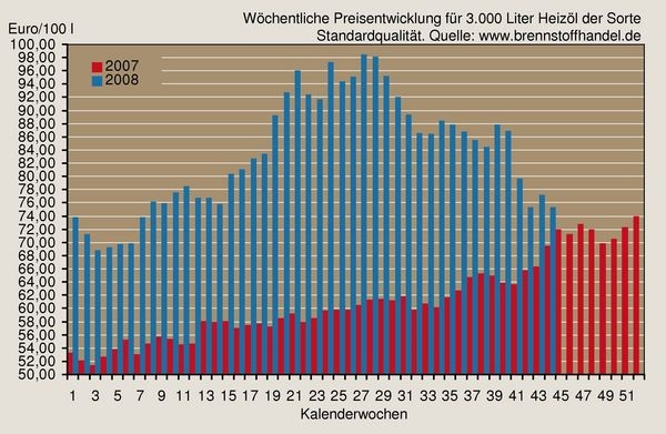 Der Heizölpreis lag in der 44. KW 2008