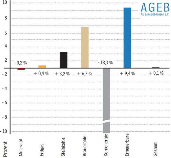 , AGEB) errechnet. Einen verbrauchssteigernden Effekt hatte neben der kühleren Witterung und dem leichten Wirtschaftswachstum der diesjährige Schalttag. Die AG Energiebilanzen beziffert den Mehrverbrauch des 29. Februars auf etwa 38 PJ oder 1,3 Mio. t SKE. Der effizientere Umgang mit Energie sowie statistische Effekte des Kernenergieausstiegs (Bericht von TGA Fachplaner) dämpften den Verbrauchszuwachs.