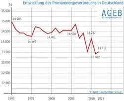 Der Primärenergieverbrauch in Deutschland wird 2012 nur leicht über dem Niveau des Vorjahres liegen. Den stärksten Einfluss auf die Entwicklung hatten die kühle Witterung in mehreren Monaten der ersten Jahreshälfte sowie der Schalttag. Von der nachlassenden Konjunktur gingen dagegen kaum verbrauchssteigernde Effekte aus. Hinzu kamen weitere verbrauchsdämpfende Faktoren wie die Zunahme der Energieeffizienz. Insgesamt wurden 2012 in Deutschland nach vorläufigen Berechnungen der Arbeitsgemeinschaft Energiebilanzen (