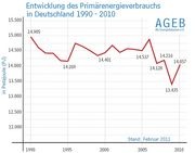 Der Energieverbrauch hat sich in den ersten drei Monaten des Jahres 2011 gegenläufig zur Gesamtwirtschaft entwickelt. Während das Wirtschaftswachstum bis Ende März mit einem Plus von über 5 % gegenüber dem Vorjahreszeitraum abschloss, lag der Primärenergieverbrauch für denselben Zeitraum mit 2,9 % im Minus. Nach vorläufigen Berechnungen der Arbeitsgemeinschaft Energiebilanzen (