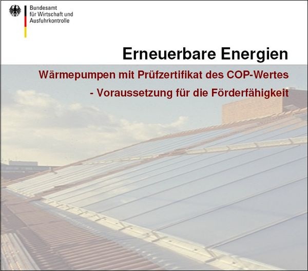 ) für Wärmepumpen ein zusätzliches Förderkriterium: Der COP-Wert elektrisch betriebener Wärmepumpen bzw. die Heizzahl bei Gasmotor- oder Gasabsorptionswärmepumpen muss die Mindestwerte gemäß dem europäischen Umweltzeichen „Euroblume“ einhalten (Bericht im Newsletter von TGA Fachplaner).