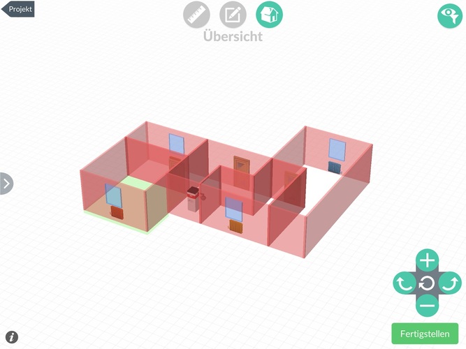 In wenigen Schritten erstellt der Anwender auf seinem Tablet oder Smartphone raumweise den Gebäudegrundriss mit Bauteilen, Heizkörpern, Öffnungen wie Fenster oder Türen und weiteren Definitionen. Durch simples Aufziehen von Räumen in verschiedenen Größen und mit individuellen Maßeingaben entstehen selbst große Gebäude kinderleicht. Integrierte Assistenten für U-Werte, Raumtemperaturen, Anlagenbauteile etc. ermöglichen die weitere Verfeinerung der Datenaufnahme. Parallel zum 2D-Gebäudegrundriss können die Eingaben in einem einfachen 3D-Modell überprüft werden.