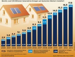 2013 sind in Deutschland 136.000 (2012: 145.000) neue Solarwärme-Anlagen mit einer Kollektorfläche von insgesamt 1,02 Mio. m