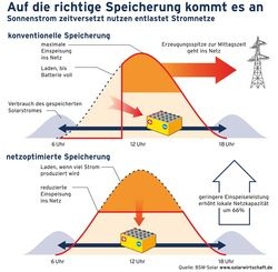 Durch die Option der Rückspeisung aus dem Speicher in das Elektrizitätsnetz lässt sich dieser netzdienliche Effekt noch weiter erhöhen. Darüber hinaus führt ein solcher Betrieb zu einer Verstetigung der Preise an der Strombörse. Jörg Mayer, Geschäftsführer von BSW-Solar: „Wir brauchen jetzt die Initialzündung im Markt für dezentrale Batteriespeicher, damit wir rasch Fortschritte auf technischer Seite und vor allem bei den Kosten erreichen können. Mit wachsender Batterieproduktion werden Solarspeicher schnell günstiger und sparen Netzausbau.“