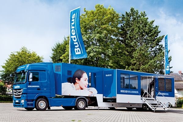 Die Größe ist beeindruckend: 16,5 m lang ist das neue Schulungsmobil der Bosch-Thermotechnik-Marke