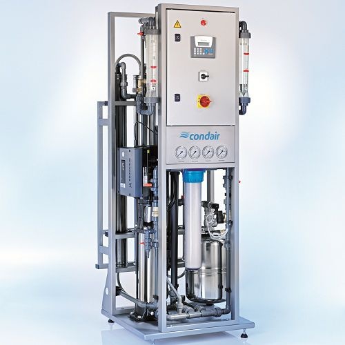Bei den Hybrid-Luftbefeuchtern Condair Dual2 von Walter Meier wird für die Druckerhöhung und Zerstäubung des Befeuchtungswassers keine eigene Pumpe mehr benötigt. Ihre Funktion übernimmt die Umkehrosmose Condair AT2. Mit ihrer exakten Steuerung des Wasserzulaufs wird stets die richtige Wassermenge mit dem passenden Zulaufdruck zwischen 4 und 7 bar bereitgestellt.