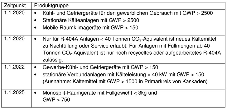 Um den Phase-down zu unterstützen, werden für gewisse Anwendungen Kältemittel oberhalb bestimmter GWP Grenzwerte verboten: