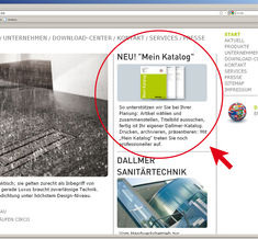 „Mein Katalog“ ist ein Werkzeug, mit dem registrierte Nutzer eine Auswahl aus dem Gesamtangebot zu einem individuellen Katalog zusammenfassen können: Katalog anlegen, Produkte hinzufügen, fertig. So hat der Nutzer alles, was für ein Projekt an Dallmer-Produkten eingesetzt werden kann, übersichtlich in Form von Datenblättern organisiert. Komplett mit Bild, Maßzeichnung, Ausschreibungstext und Zubehörliste. Die Zusammenstellung erfolgt zielgerichtet über Artikelnummern oder menügesteuert aus der Produktdatenbank. Bis zu 25 Kataloge kann jeder Einzelne anlegen und speichern, in der Folge verändern, herunterladen und ausdrucken.