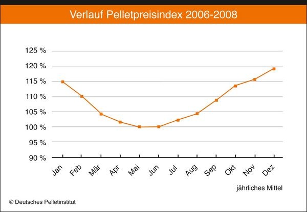 ) Verbrauchern, ihre Pelletlager bald aufzufüllen. „Wer sich jetzt für den kommenden Winter mit Holzpellets eindeckt, macht alles richtig“, erläutert DEPI-Geschäftsführer Martin Bentele. Der mehrjährige Verlauf des Pelletpreisindex (2006 bis 2008) zeige, dass die Preise im Mai den Tiefstand erreichen. „Der Markt stellt sich dann durch ein Überangebot an Pellets als ein Verbrauchermarkt dar. Das sollten preisbewusste Konsumenten nutzen“, empfiehlt Bentele.