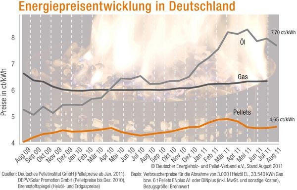 ) berichtet, betrug der Durchschnittspreis im August 227,71 (Juli 2011: 225,96) Euro/t. Der DEPV erhebt seit Jahresbeginn 2011 über das Deutsche Pelletinstitut (