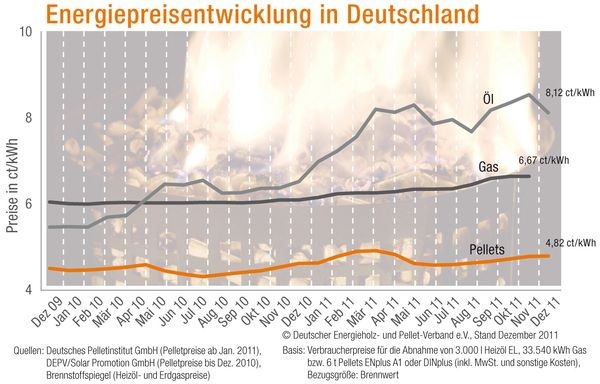 ) berichtet, betrug der Durchschnittspreis im Dezember 236,42 (November 2011: 235,99) Euro/t. Der DEPV erhebt seit Jahresbeginn 2011 über das Deutsche Pelletinstitut (