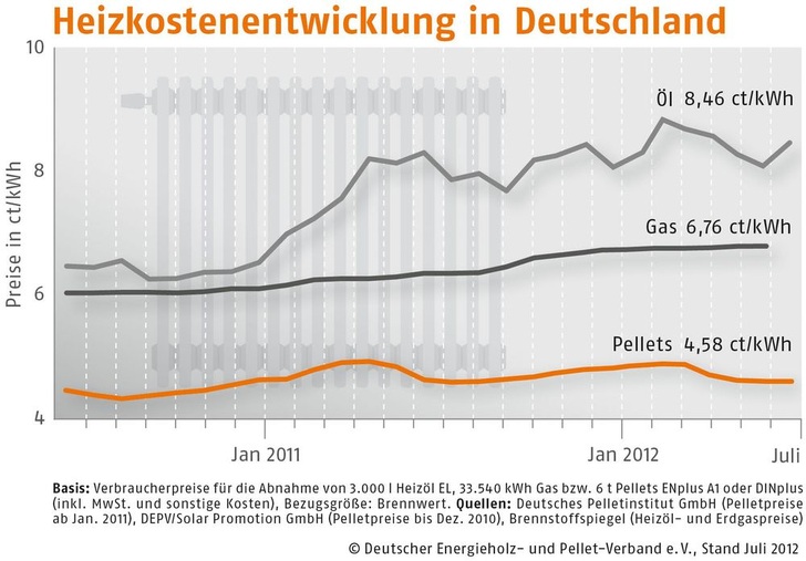 ) berichtet, betrug der Durchschnittspreis im Juli 224,54 (Vormonat: 224,54) Euro/t. Der DEPV erhebt seit Jahresbeginn 2011 über das Deutsche Pelletinstitut (
