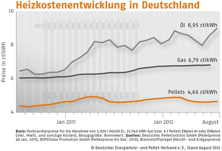 Der Bezugspreis für Holzpellets in Deutschland ist im August 2012 saisontypisch leicht gestiegen (+1,9 %). Wie der Deutsche Energieholz- und Pellet-Verband (