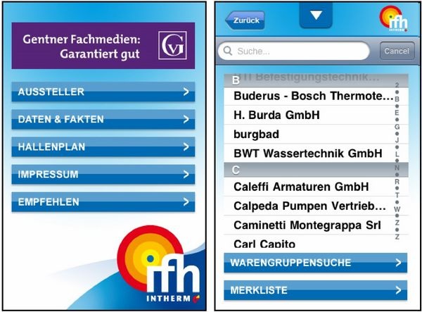 Die App IFH 1.0 (3 MB) wird vom Alfons W. Gentner Verlag kostenlos zur Verfügung gestellt und steht im iTunes AppStore (Genre Wirtschaft). ToR