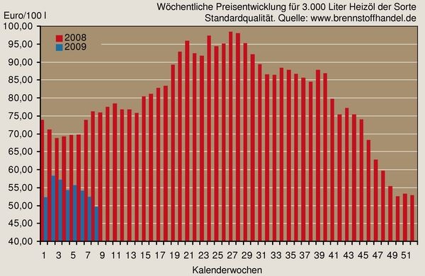 Der Heizölpreis lag in der 08. KW 2009