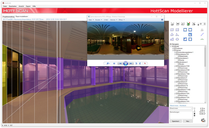 Dank neuster Erfassungstechnologie werden weniger Messwerte benötigt, um nach Datenübergabe an die HottScan Software vollständige 3D-Räume zu modellieren. Aus diesen lassen sich druckbare Mengenauswertungen für Planungsmaßnahmen generieren. Die Modellierung ist einfach und erfordert keine speziellen Fachkenntnisse.