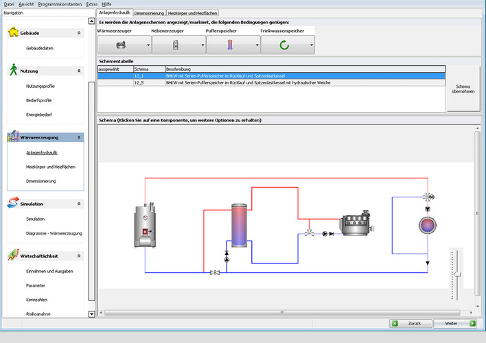 Eine Auslegung bezieht sich dabei z.B. auf ermittelte Normwerte wie Wärmebedarf, Spitzenvolumenstrom und viele mehr. „ HS PROFI-PLAN 3D PLUS “ von Hottgenroth beinhaltet dabei drei Programmteile: Wärmepumpenauslegung, KWK-Auslegung und die Auslegung von Kesseln und Speichern (HS DIM-PLAN 3D). In den Berechnungen enthalten sind die Ermittlung der Gebäudeheizlast nach DIN EN 12831-2, die Abschätzung und Berechnung der optimalen Pufferspeichergröße via N-Zahl-Methode und Wärmeschaubild, sowie die einfache Berechnung der Rohrleitungsverluste nach DIN 18599-5. Die zusätzlich integrierte CAD von Hottgenroth (HottCAD) ermöglicht die Datenübernahme oder das Erstellen von Grundrissen und 3D-Modellen der Gebäude.