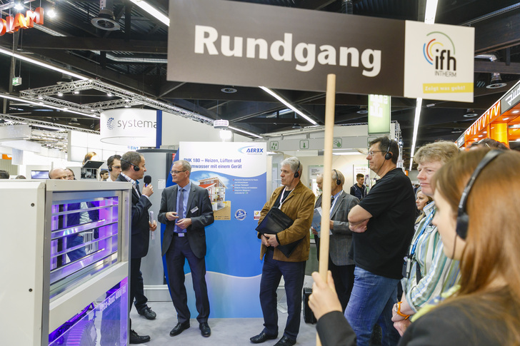 Täglich geführte Messe-Rundgänge zu den Themen Heizung und Erneuerbare Energien (10.00 Uhr) sowie Lüftungs- und Haustechnik (13.00 Uhr). Start und Ziel ist das Forum Hocheffiziente Gebäudesanierung. Empfehlenswert: ein Besuch in der angeschlossenen PlanBar – ideal zum Kontakte knüpfen und Netzwerken.