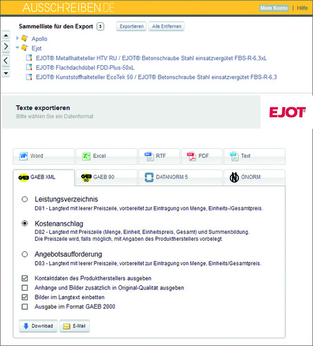 Orca Software, 10.1 FOY10: Ausschreiben.de ist eine frei zugängliche Online-Datenbank, in der aktuell 570 Produkthersteller ihre Ausschreibungstexte und weiterführende Informationen zum kostenlosen Download veröffentlichen. In 650 Katalogen finden Nutzer über 950.000 Ausschreibungstexte. Zusatzinformationen sind direkt zugeordnet, z.B. Grafiken, BIM-Daten, Anleitungen und Zertifizierungen. www.orca-software.com