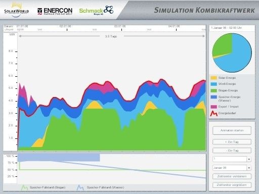 ) haben die drei Unternehmen mit dem Pilotprojekt über eine mehrmonatige Laufzeit das Vorurteil - die Verfügbarkeit von Strom aus Erneuerbaren hängt zu stark von meteorologischen Einflüssen ab - widerlegt. Ulrich Schmack, Vorstandssprecher der Schmack Biogas AG: „Das Kombikraftwerk zeigt, dass erneuerbare Energien auch ohne die Unterstützung von konventionellen Kraftwerken sehr gut im Verbund funktionieren.“