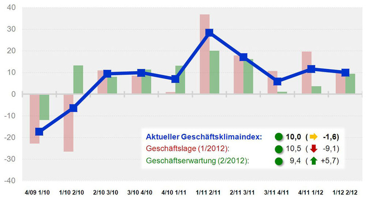 Die exorbitant gestiegenen Rohstoffpreise seit Jahresbeginn bis April 2012 sind trotz positiver Absatzentwicklung aber mehr als nur ein „Wehrmutstropfen“. Angesichts ihrer Entwicklung fällt der Index für die Herstellungskosten im 1. Quartal 2012 deutlich in den negativen Bereich. Mit einem Wert von –29,5 erreicht der Index seinen tiefsten Wert seit Erhebungsbeginn Ende 2008.