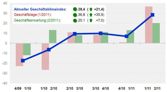 ) erhobene Geschäftsklimaindex für Kunststoffrohre hat sich im 1. Quartal 2012 mit einem Wert von 10,0 annähernd auf dem Niveau des Vorjahres (11,6) stabilisiert. Allerdings ist der Wert für die Geschäftslage in den ersten drei Monaten des Jahres 2012 im Vergleich zum 4. Quartal 2011 um 9,1 Punkte gefallen. Das Absatzniveau liegt aber weiterhin im positiven Bereich und damit über dem des Vorjahres.