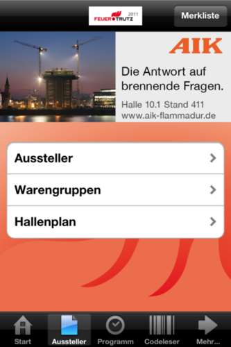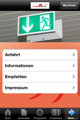 Ein eingebauter QR-Code-Reader schafft die Basis für einen Zusatznutzen der FeuerTRUTZ-App. Hinter einem QR-Code (Quick Response) können Aussteller z.B. Internetverknüpfungen zu den ausgestellten Produkten ablegen. Mit dem iPhone kann der QR-Code eingelesen werden, sodass die Nutzer direkt auf die hinterlegten Seiten gelangen. Alle eingelesenen QR-Codes werden in der App gespeichert und sind jederzeit wieder abrufbar. ■