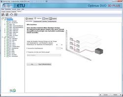 Parallel zum 2D Gebäudegrundriss können die Eingaben in einem einfachen 3D Modell überprüft werden. Die Heizungsanlage wird etagenweise mit allen Strängen sowohl im 2D und 3D Grundriss abgebildet. Die erfassten Daten werden zur Berechnung der erforderlichen Heizleistung bzw. Optimierung der Heizungsanlage direkt an Optimus Duo übergeben.