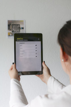 Der Anwender der App scannt den Marker und das ausgesuchte Design wird auf dem Bildschirm in den Raum projiziert. Über den Touchscreen bewegt der Nutzer die Gitter dann einfach an unterschiedliche Positionen. Der Nutzer kann selbst Fotos erstellen und speichert sie in einem eigens dafür angelegten „startline“-Ordner bei den Fotos bzw. in der Galerie des Geräts ab. Die App zeigt detaillierte Informationen zu den einzelnen Designgittern an.