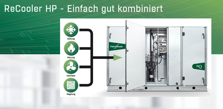 Als integraler Bestandteil von eQ-Lüftungszentralgeräten kombiniert der neue und innovative ReCooler HP von Fläkt Woods eine reversible Wärmepumpeneinheit und einen Energierückgewinnungsrotor und punktet sowohl in der Konstruktion als auch beim Betrieb mit überzeugenden Vorteilen.