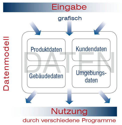 Für Berechnungen im Rahmen der TGA sind diverse Daten erforderlich. Zur Erstellung von Energieausweisen werden andere Angaben benötigt, als zur Berechnung der Heizlast. Die Kühllastberechnung berücksichtigt umfassende Klimadaten. Für den Hydraulischen Abgleich sollten Produktdaten zur Verfügung stehen. Das Datenmodell ermöglicht den intelligenten Datenaustausch zwischen allen Programmmodulen der TGA-Software. Die fachgerechte Strukturierung der Gebäudedaten gewährleistet – bei einmaliger Erfassung – die Nutzung für verschiedene Anforderungen. Das im Arbeitsprozess befindliche Modul extrahiert die für den jeweiligen Rechenprozess benötigten Daten. Die Daten können manuell, über Import (IFC) oder grafisch erfasst werden. In der hauseigenen CAD lässt sich jeder Arbeitsschritt sofort in der 3D-Ansicht visuell kontrollieren.