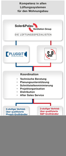 Zukünftig koordinieren Pluggit und S&P ihre objektbezogenen Services auf einheitlichen IT-Plattformen und durch die direkte, persönliche Kommunikation der einzelnen Abteilungen untereinander. Bolsmann: „So heben wir Synergien in der technischen Beratung, der Planungsunterstützung, der Projektorganisation, der Schnittstellenoptimierung, der Distribution und nicht zuletzt dem After Sales Service zum Nutzen unserer Partner.“ Vertriebsseitig agieren beide Unternehmen unter den bekannten Marken Pluggit und S&P und in ihren bisherigen Vertriebsschienen. ■
