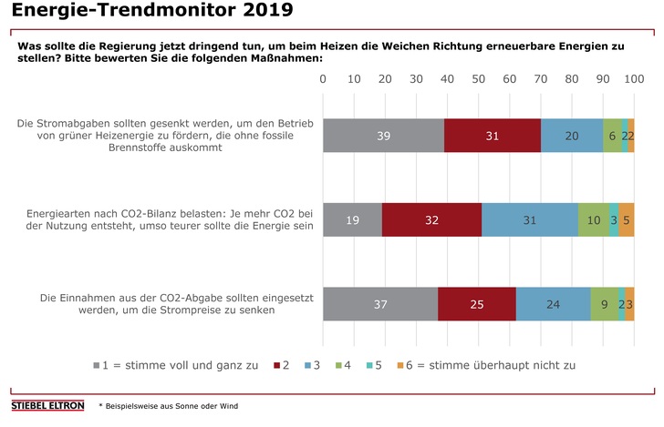 82 % der Bundesbürger sind der Meinung, je mehr klimaschädliches CO 2 eine Energie freisetzt, desto teurer sollte sie sein – so ein Umfrage-Ergebnis des jüngsten Energie-Trendmonitors von Stiebel Eltron.