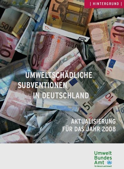 Die umfassende Studie zu den umweltschädlichen Subventionen erscheint in Kürze. Aktuell steht das Hintergrundpapier „Umweltschädliche Subventionen in Deutschland – Aktualisierung für 2008“ als PDF-Download zur Verfügung. PDF-Download der Vorgängerstudie „Umweltschädliche Subventionen in Deutschland“ mit Daten für das Jahr 2006.