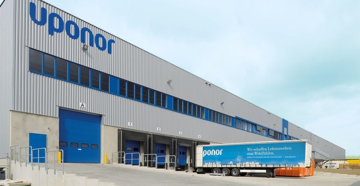 Das neue Logistikzentrum der Uponor GmbH am Firmenhauptsitz in Haßfurt.