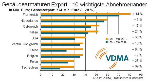 In der ersten Jahreshälfte 2010 erzielte die deutsche Gebäudearmaturenindustrie ein nominales Umsatzplus von insgesamt 5 %. Dies meldet der