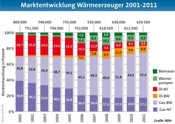 endgültig in der Spitzengruppe der deutschen Anbieter etabliert hat. Inzwischen hat das Unternehmen in Mainburg über 1,5 Millionen Wärmeerzeuger gefertigt. Das Produktionsjubiläum wurde Ende 2011 erreicht. Die Zahl umfasst Öl- und Gasheizkessel, Heiz- und Brennwertthermen sowie Wärmepumpen, die ab 1981 in Mainburg produziert worden sind. Mehr als zwei Drittel der 1,5 Mio. Geräte wurden auf dem deutschen Markt abgesetzt, über 350.000 Wärmeerzeuger exportierte Wolf ins Ausland. Beachtlich auch die Entwicklungen im Jahresvergleich: Verließen 1984/85 noch rund 6000 Geräte das Mainburger Werk, waren es im Geschäftsjahr 2011 bereits über 80.000 Wärmeerzeuger.