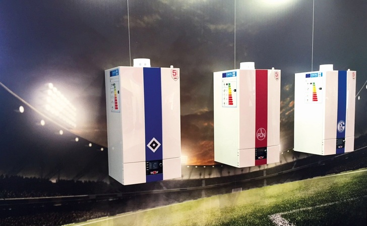 Seit Mitte April 2018 sind die Gas-Brennwert-Therme CGB-2, das Öl-Brennwert-Gerät TOB und die Split-Wärmepumpe BWL-1S von Wolf in Spezial-Editionen in verschiedenen Vereinslooks erhältlich. Heizungsbauer können fußballbegeisterten Kunden diese drei Wärmeerzeuger jetzt auch in Vereinsfarben anbieten. Bisher kooperiert Wolf mit dem FC Schalke 04, dem Hamburger SV und dem 1. FC Nürnberg, weitere Vereinspartnerschaften sind geplant.