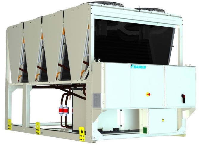 Daikin, 4A-111: Der luftgekühlte Kaltwassersatz EWAT~B- wird mit dem Kältemittel R32 betrieben und ist ein- oder zweikreisig mit Leistungen von 80 bis 700 kW erhältlich. Die Systeme sind mit einem Microchannel-Verflüssiger und optional mit geregelten Pumpen ausgerüstet. Mit über 150 Ausstattungsoptionen lassen sie sich an die spezifischen Anforderungen anpassen. Es gibt zwei Effizienzausführungen und drei Schallkonfigurationen. www.daikin.de