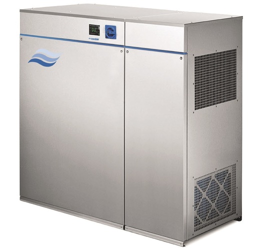 Condair, 4-207: Die Adsorptionstrockner DA haben durch horizontal liegende Sorptionsrotoren eine besonders kompakte Bauform. Die prozess- und regenerationsluftseitigen Anschlüsse befinden sich jeweils auf einer Geräteseite. Dies erlaubt den Anschluss zahlreicher Zusatzmodule. Im Vor- und Nachkühlmodul können bis zu vier Wärmeübertrager verbaut werden, die eine Temperaturregelung der ein- und ausströmenden Luft ermöglichen. Für den Regenerationsprozess sind ein luftgekühltes Kondensations- oder ein Wärmerückgewinnungsmodul erhältlich. www.condair.de