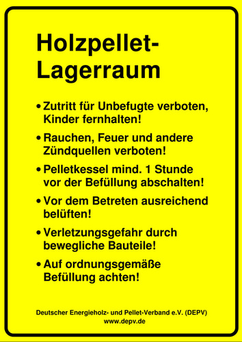 Folgende Sicherheitsratschläge für Pellet-Lageranlagen mit Lagermengen bis 10 t wurden von DEPV und TÜV Rheinland erarbeitet: