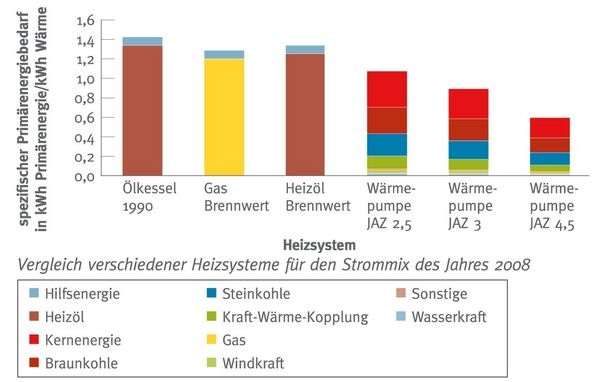 Dies analysiert die Studie „Energiewirtschaftliche Bewertung der Wärmepumpe in der Gebäudeheizung“ von Prof. Dr.-Ing. Ulrich Wagner , Lehrstuhl für Energiewirtschaft und Anwendungstechnik (IfE) an der TU München. Dazu werden der Primärenergieeinsatz und die CO 2 -Emissionen von Wärmepumpen mit Gas- und Ölbrennwert-Heizkesseln und älteren Ölkesseln, jeweils für den Strommix von 2008 und 2030 auf Basis der Jahresarbeitszahl (JAZ) verglichen. Ebenfalls untersucht wurden die Auswirkungen durch den weiteren Zubau von Wärmepumpen auf den Kraftwerkspark.