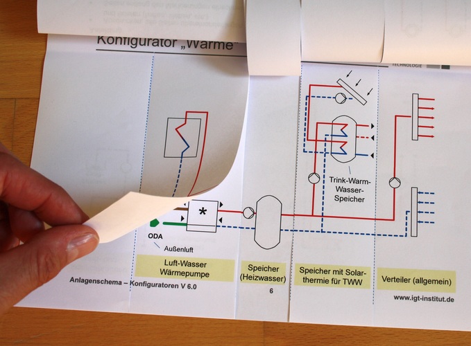 Diese Eigenschaft nutzen die vom das IGT - Institut für Gebäudetechnologie entwickelten Konfiguratoren für Wärme, Kälte und Raumluft, mit denen man sich einfache Schemata „zusammenblättern“ kann.