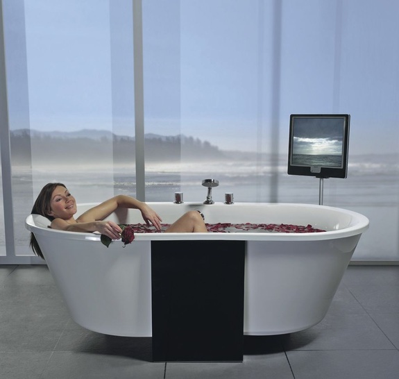 Die Badewanne Ovalis F von Repabad ist mit dem iF product design award 2008 ausgezeichnet worden. Ovalis F scheint auf den ersten Blick zu balancieren. Denn die tragende Spange signalisiert prägnant den Schwerpunkt der Wanne. Ihre Fronten sind wahlweise aus Glas oder Holzdekor erhältlich. In der Whirlpoolausstattung ist die komplette Technik zwischen Wanne und Außenverkleidung untergebracht. Steuerung und Aggregate werden in der Spange oder unter der Wanne eingebaut.