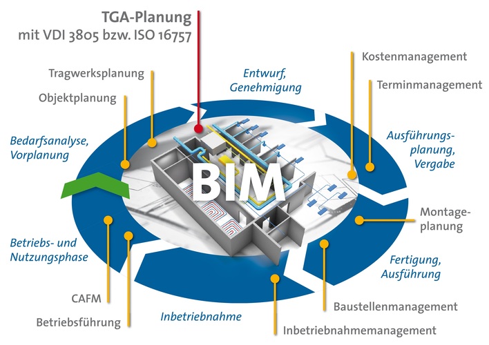 Mit Blick auf die internationale Vorreiterrolle der Richtlinie VDI 3805 arbeiten die Verbände BTGA, BWP; B.KWK, HKI, ZVSHK, VDMA und BDH gemeinsam daran, dieses Regelwerk in die internationale Norm ISO 16757 zu überführen. Letztendlich tragen diese Regelwerke dazu bei, die standardisierten digitalen Produktdaten in internationale BIM-Modelle zu integrieren. Da es sich bei der Richtlinie VDI 3805 um einen in der Praxis bewährten und gelebten Standard handelt, hat der BDH die Bundesregierung sowie die Landesregierungen aufgefordert, diesen bei der Einführung von BIM als Stand der Technik zu übernehmen. ■