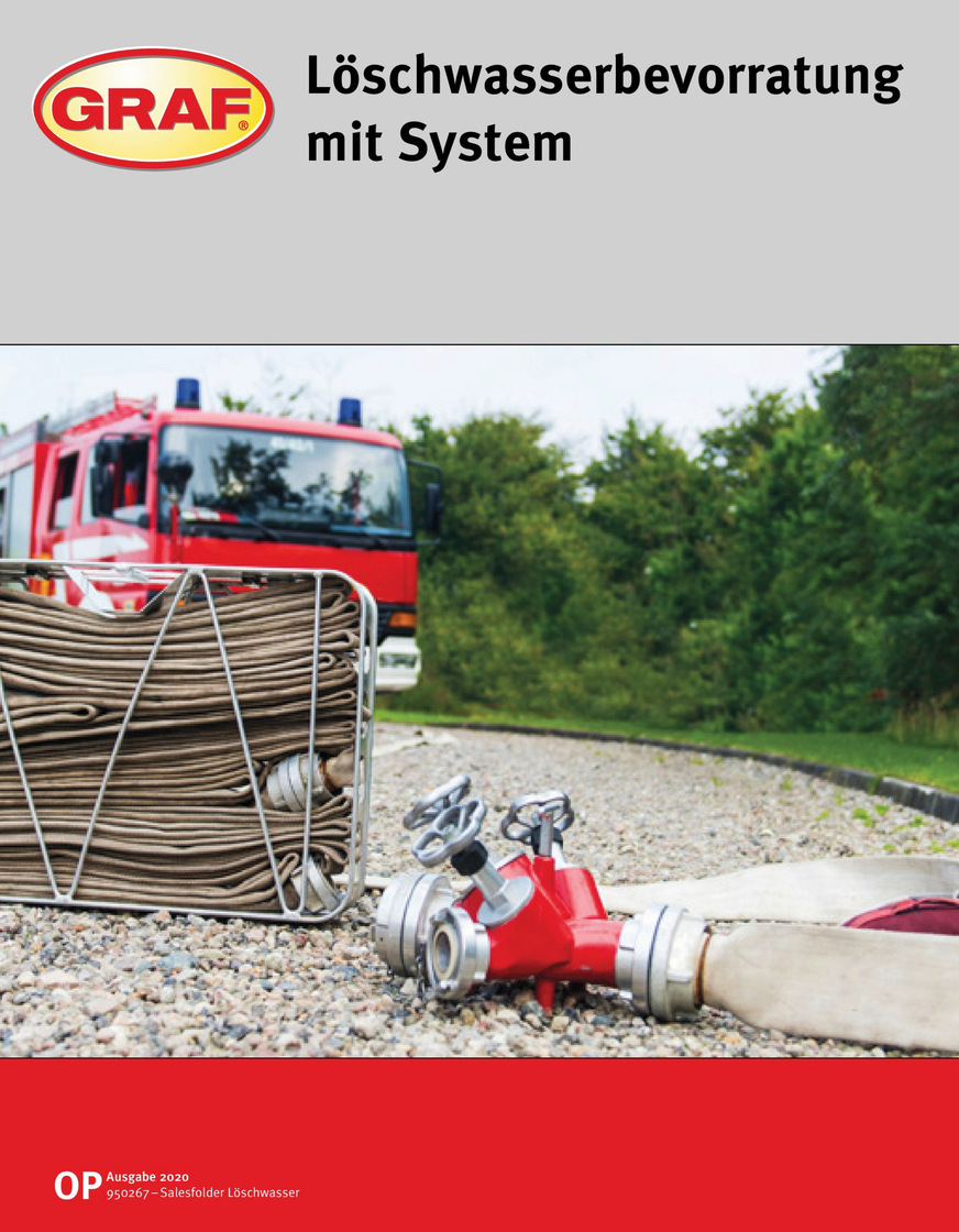 Die Broschüre „Löschwasserbevorratung mit System“ informiert auf 36 Seiten über die Planung und Bemessung unterirdisch angeordneter Löschwassertanks und über die Systemlösungen und das Zubehör von Graf. Download auf www.graf.info/de/loeschwasser