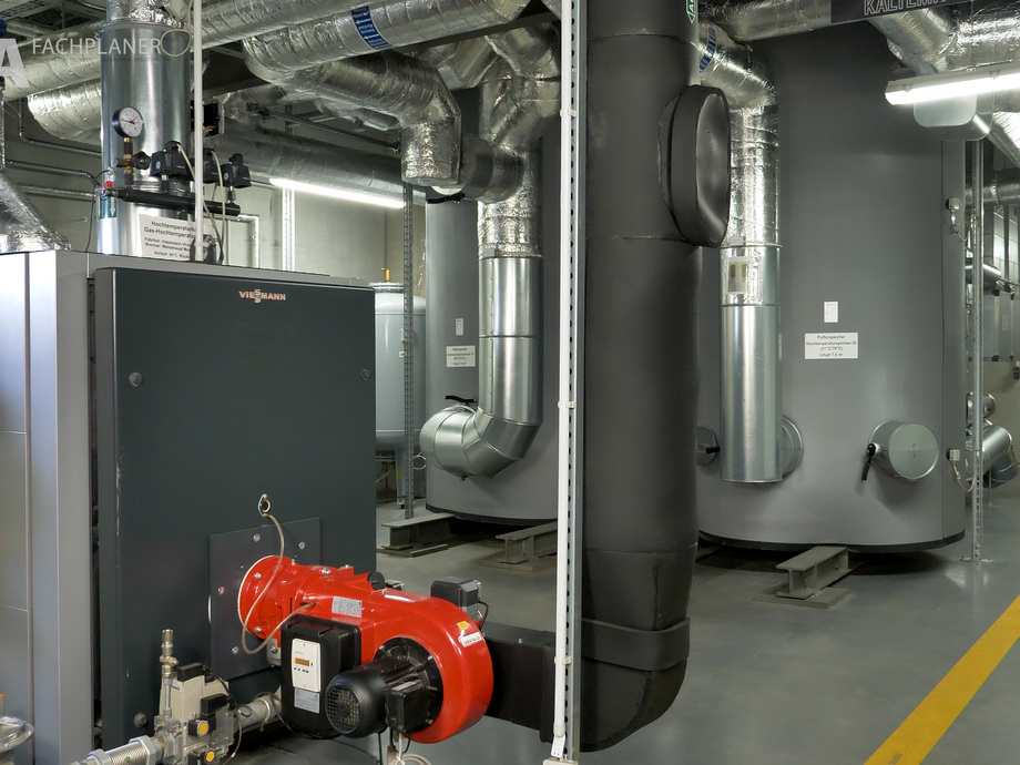 Wärmebedarfsspitzen werden von zwei Gas-Brennwertheizkesseln Vitocrossal 300 mit 1280 bzw. 1000 kW Nennleistung sowie einem Gas-Niedertemperaturheizkessel Vitoplex 200 mit 900 kW Nennleistung gedeckt.