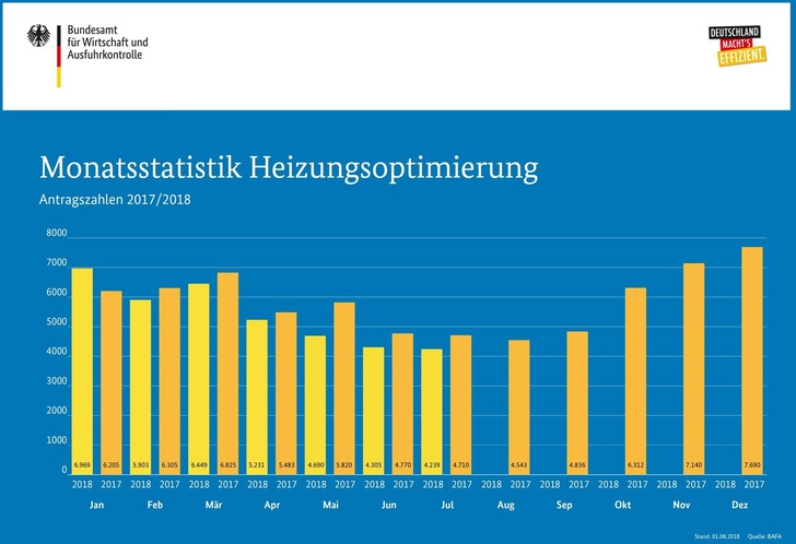 Für Andreas Obersteller, Präsident des BAFA, ist dies ein gelungener Start. „Die Zahlen belegen, dass das Thema Heizungsoptimierung zunehmend in den Fokus von Heizungsfachunternehmen und Hausbesitzern rückt. Neue Heizungspumpen benötigen bis zu 80 % weniger Strom. Der Austausch lohnt sich nicht nur wirtschaftlich, jeder Einzelne kann so auch zu einer klimaschonenden Wärmeversorgung beitragen.“